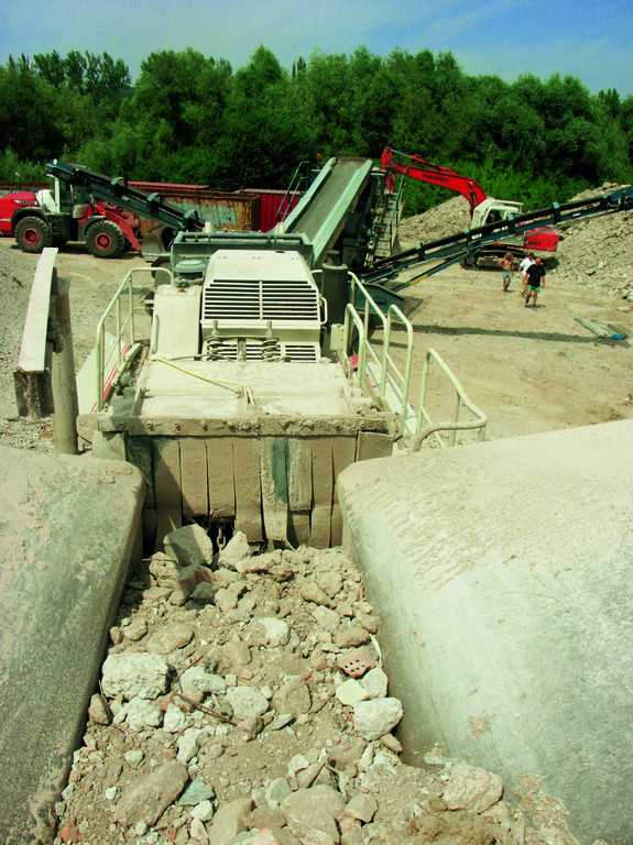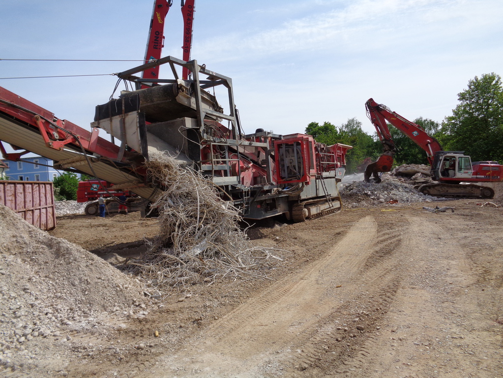 Dabei sind verschiedene Körnungen und auf Wunsch Vorabsiebaustrag möglich. Die raupenmobile Ausführung unserer Anlage erlaubt den Einsatz unmittelbar am Abbruchobjekt.